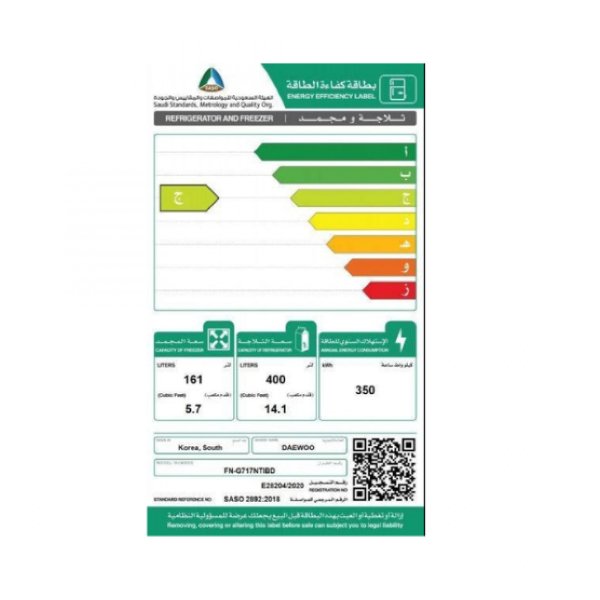 سعة الثلاجه : 14.1 قدم