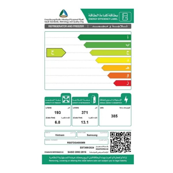 سعة الثلاجه : 13.1 قدم
