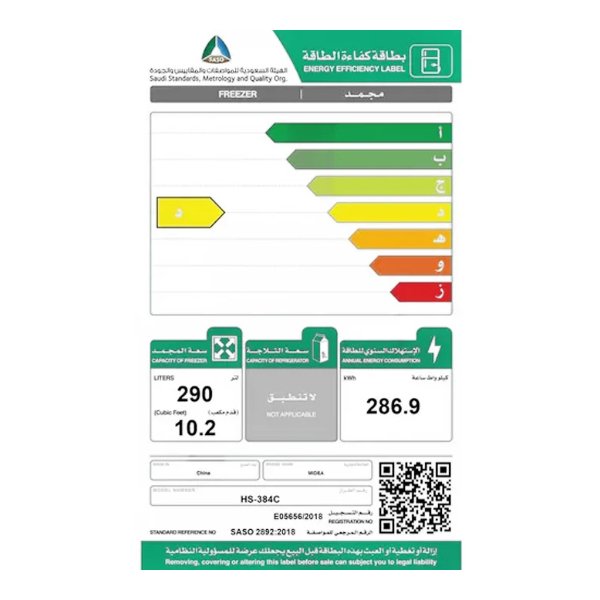 مواصفات فريزر ميديا 10 قدم افقى 290 لتر تجميد سريع / ابيض – HS-384C