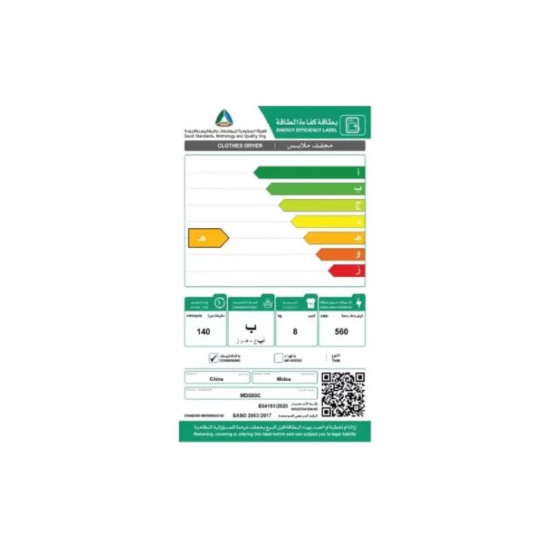 مواصفات مجفف ملابس ميديا تعبئه اماميه 8 كيلو 16 برنامج تجفيف بالتكثيف / ابيض – MDG80C