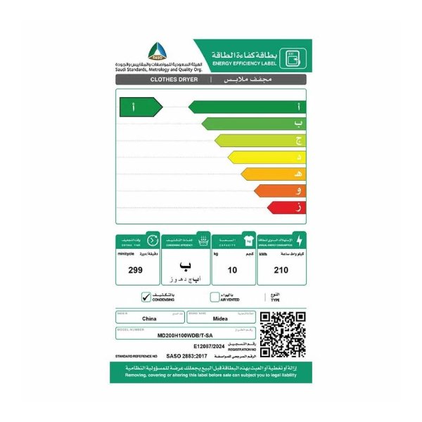 مواصفات مجفف ملابس ميديا 10 كيلو تجفيف بالتكثيف انفرتر / تيتانيوم – MD200H100WDB/T-SA