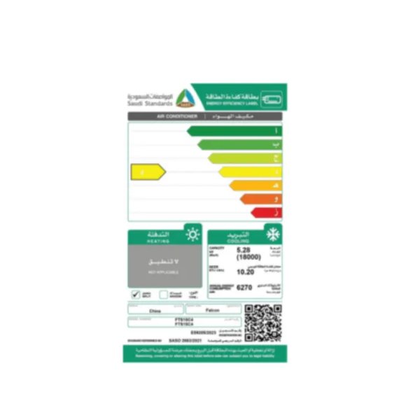 مواصفات مكيف سبليت فالكون 18000 وحده بارد فقط تنظيف ذاتى – FTS18C4