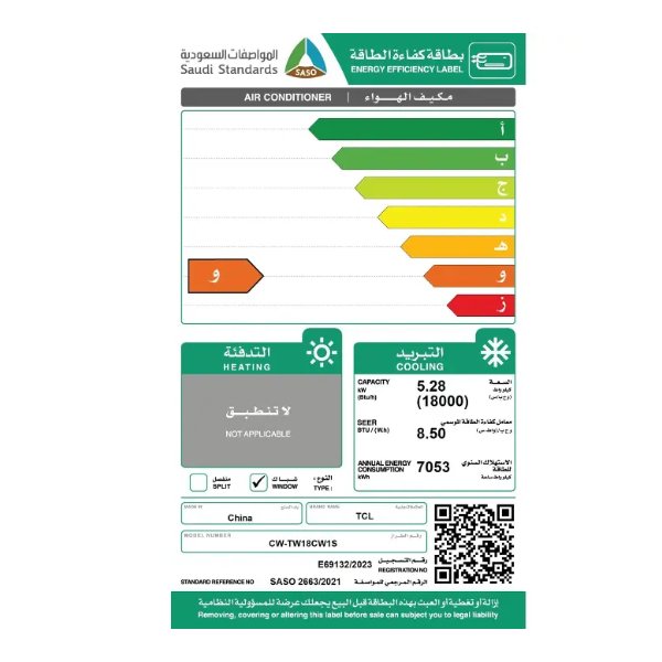 مواصفات مكيف شباك تى سى ال 18000 وحده بارد فقط – CW-TW18CW1S
